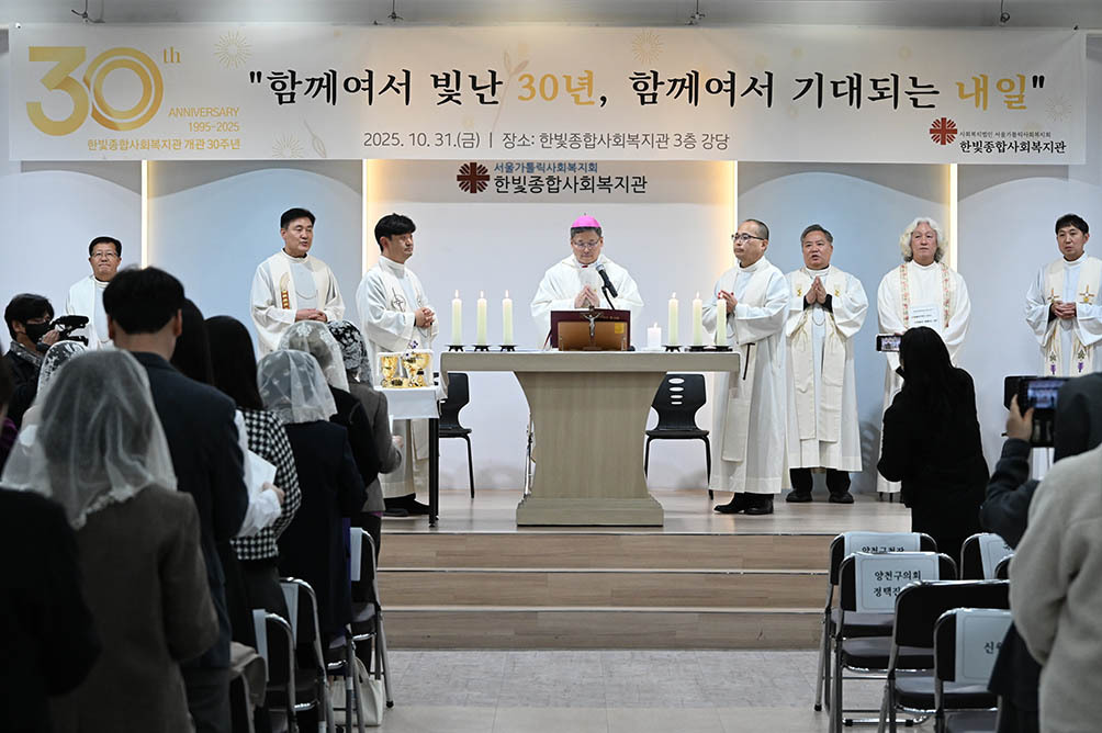 서울대교구장 정순택 대주교는 미사 강론에서 “한빛종합사회복지관은 지역 사회 발전을 위한 주민들의 협동 의식·연대감 조성을 통해 지역 사회 통합을 도모하고 종합복지센터의 역할 수행을 위해 설립됐다”며 “30년이란 긴 시간 변함없이 지역 주민과 함께하며 소외된 이들에게 나눔과 희망의 빛을 전해온 데 대해 깊은 감사를 보낸다”고 전했다.