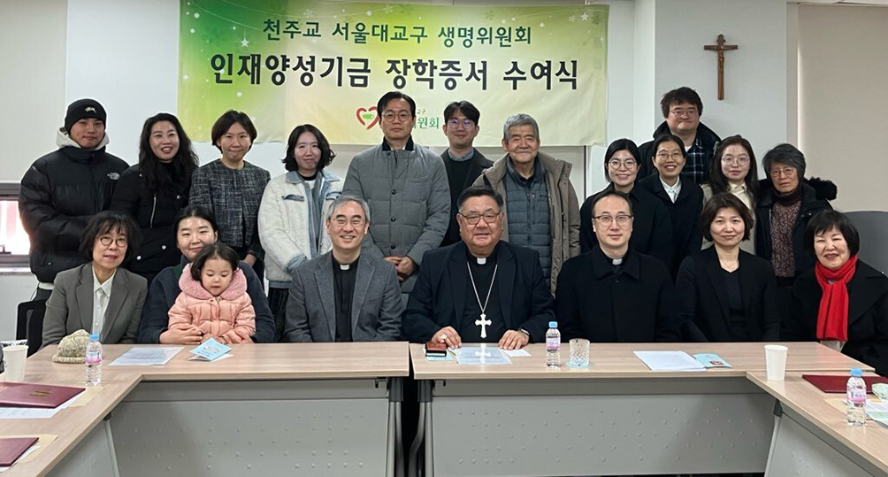 서울대교구 생명위원회 인재양성기금위원회(위원장 이경상 주교)는 7일 교구청에서 ‘2026년 전기 인재양성기금 장학증서 수여식’을 열고, 생명문화 확산에 이바지하는 석·박사 과정 학생 13명에게 장학증서를 전달했다.
